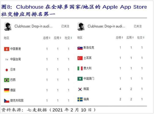 而实时语音社交平台Clubhouse于2020年上线后,热度持续上升,在欧美等地区的社交榜应用排名第一。