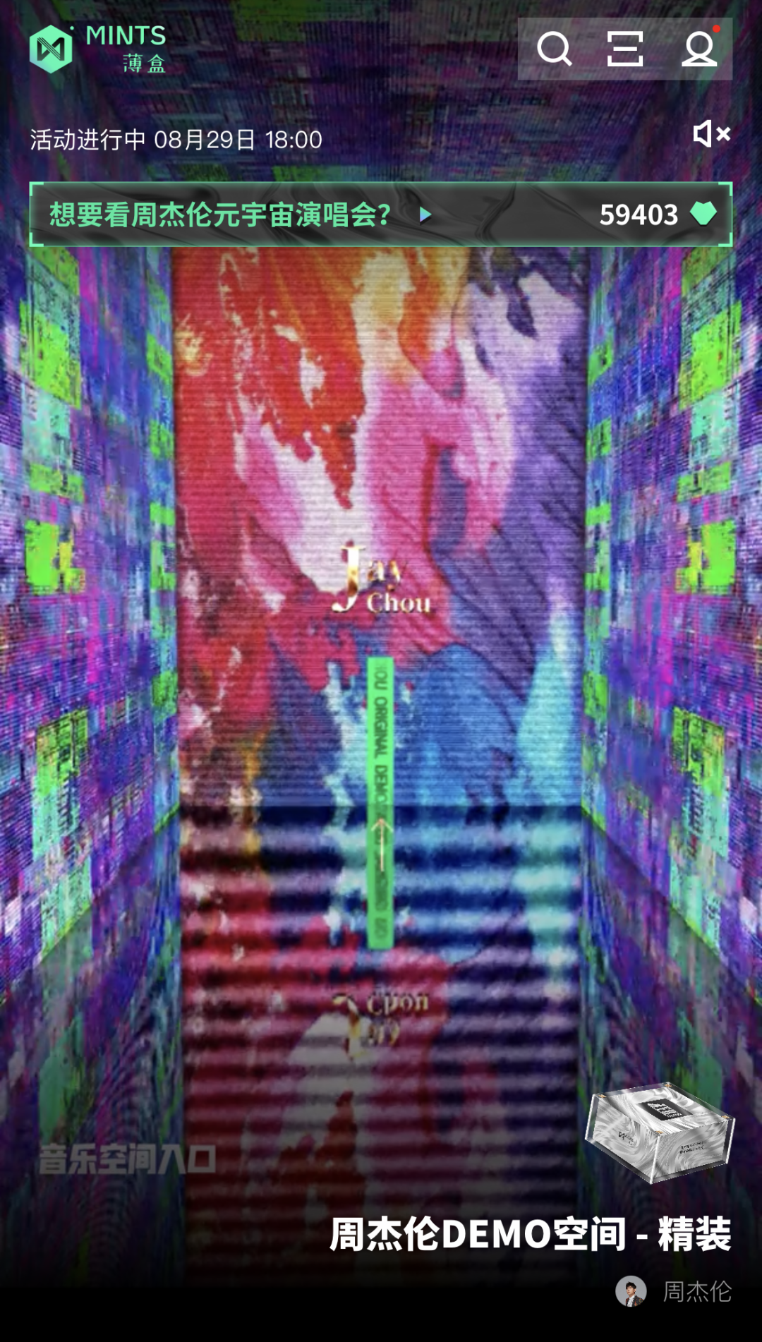 值得注意的是,五首歌的DEMO并未选择在音乐平台上线。VCR中周杰伦宣布与数字藏品平台薄盒APP合作,制作了DEMO的元宇宙空间,以盲盒形式限时售卖。