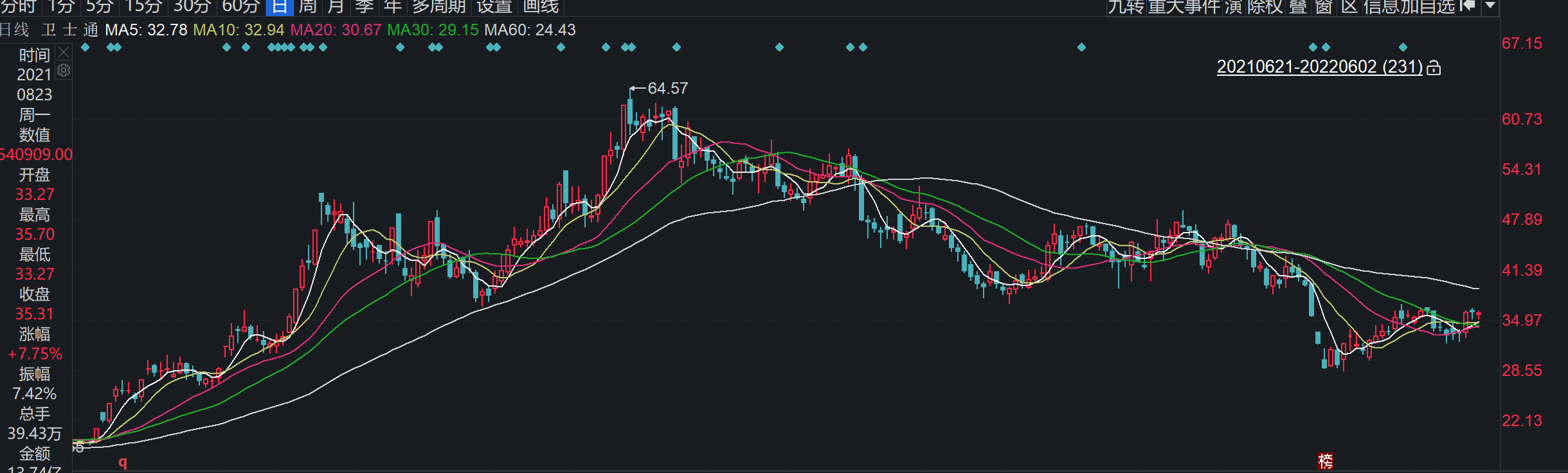 今年一季度第一大重仓股卫士通,蔡嵩松自2021年三季度开始便一路持有,但到了2021年四季度卫士通股价在创出64.57元/股的高位后出现大跌。2021年11月15日至2022年8月29日,卫士通区间跌幅已经达43.44%。据卫士通2022年一季报显示,报告期该公司归母净利润亏损3845万元,扣非净利润亏损4162万元。业绩公布后股价出现下跌,说明蔡嵩松的左侧布局尚未见成效。