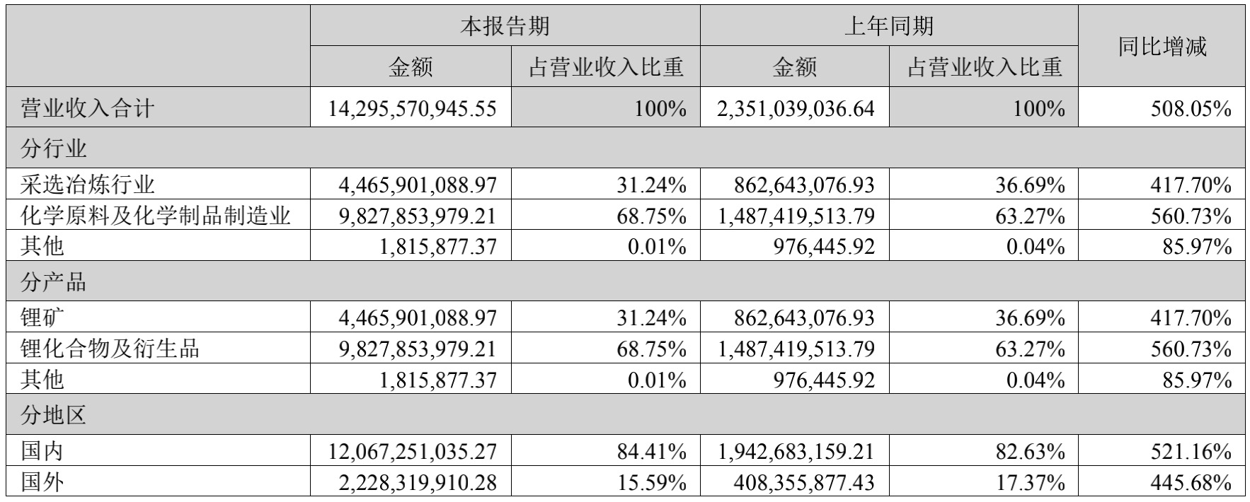 (天齐锂业营业收入构成,来源;中报)