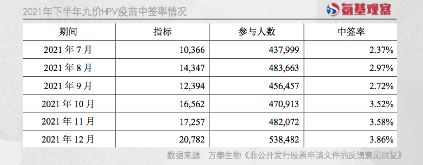当然,现阶段九价苗放开年龄限制,对于二价苗也不完全是利空。毕竟,九价苗素来难抢。2021年下半年,深圳6次摇号中签率均不超过4%。