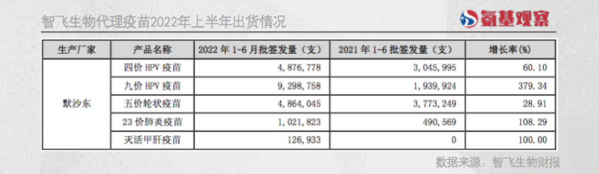 一直以来,“印钞机”四/九价HPV疫苗,都是撑起智飞生物千亿市值的关键。如下图所示,上半年智飞生物代理的九价疫苗批签发量达929.88万支,同比增长率为379.34%。