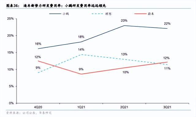 研发费用最为直观。2021年,小鹏汽车的研发费用达41.1亿元,占全年总营收的19.5%。对此,小鹏汽车向节点财经表示,其为中国研发费用占比最高的车企,远高于其友商,以及奔驰、宝马等全球主流汽车品牌。