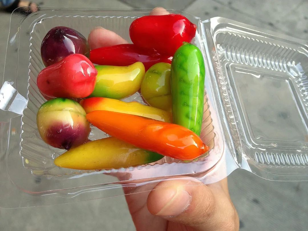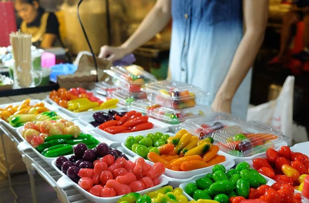 作为曾经的“皇室御膳”,这种源自泰国的甜点,有着鲜艳的色彩和仿照各种水果捏制出的精致造型,让人忍不住想象它晶莹剔透的外表下,究竟会有怎样可口的味道。对于让露楚成功走红的市集摊主们来说,它又像一个趣味挑战,在捕获消费者的同时,获得前所未有的关注。