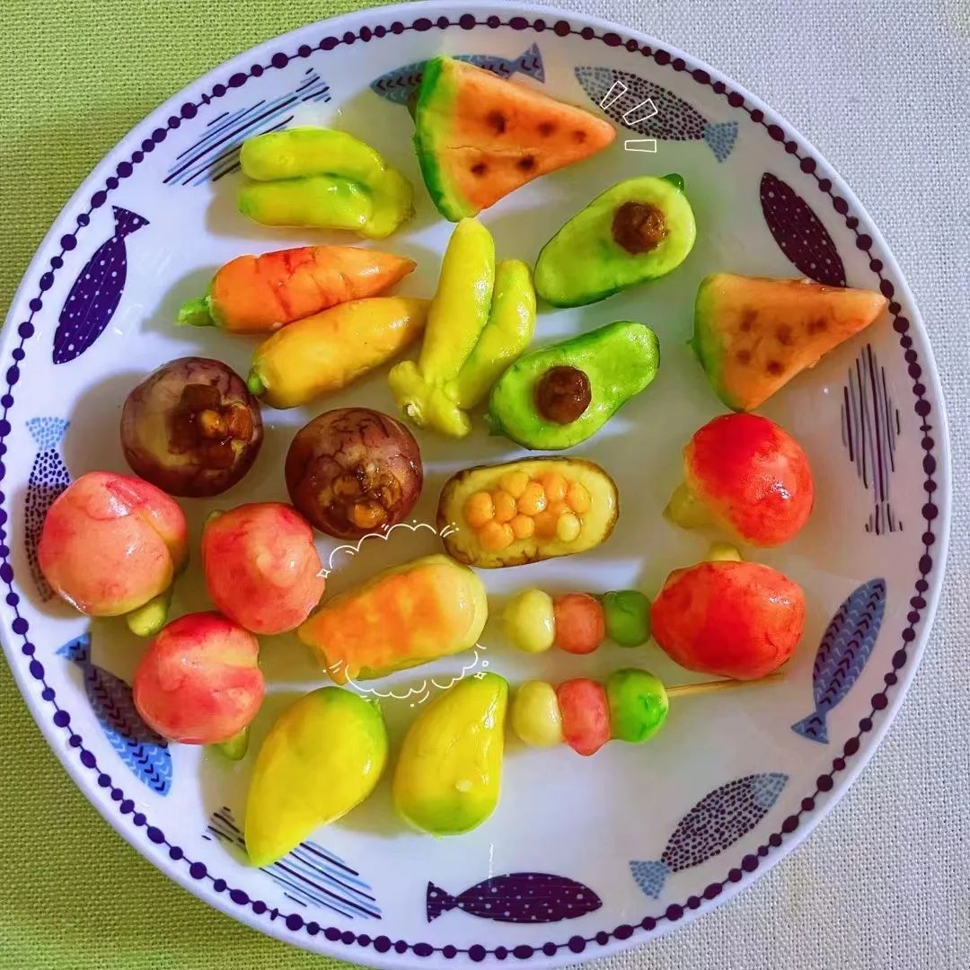 据手工爱好者小颖介绍,露楚的制作过程其实很简单,只需要把绿豆经过脱皮蒸熟制成绿豆蓉,然后手工捏成各种水果的造型,再使用色素进行上色,等到颜色稳定后再裹上两到三层透明的琼脂,待琼脂凝固后就可以打包装盒。
