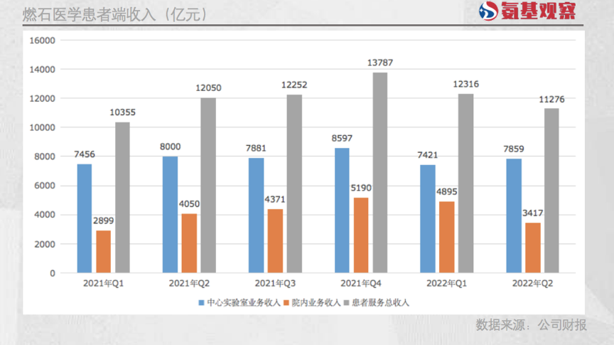 仔细拆分来看,燃石医学患者端收入表现也并不惊艳。如下图所示,不管是院内还是院外业务,看上去都遇到了一定瓶颈。