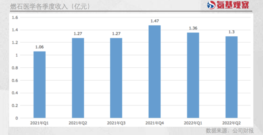 如下图所示,二季度燃石医学总收入为1.3亿元。虽然公司营收同比依然增幅不小,但环比数据并不乐观。对于一个几乎没有季节影响的行业,环比数据显然更能反映公司真实经营状况。