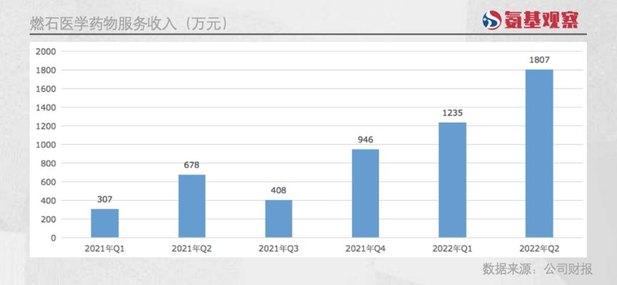 目前,公司三驾马车中,MRD检测产品和药企服务已进入商业化阶段。其中,药企服务收入已经初具规模。如下图所示,二季度收入规模已达1807万元。