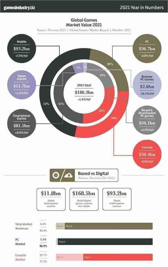 事实上,掌机在中国最大的对手正是手机。GamesIndustry公布的数据显示,2021年手机平台独占游戏行业52%的份额,PC+主机都不如手机。手机游戏之所以能蚕食PC和主机的市场,是因为手机便于携带,能够充分利用碎片化时间,上个厕所的时间都可以开一局《王者荣耀》。