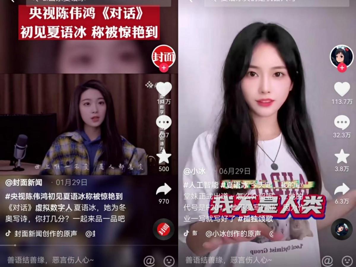 而虚拟偶像的出道流程也越来越真实、快速。比如夏语冰的出道标签就是央美研究生,画作还参加了迪拜世博会。当她带着“高学历美女”的标签在央视翻唱《路过人间》献上出道首秀,相关话题便迅速占领社交平台热榜。
