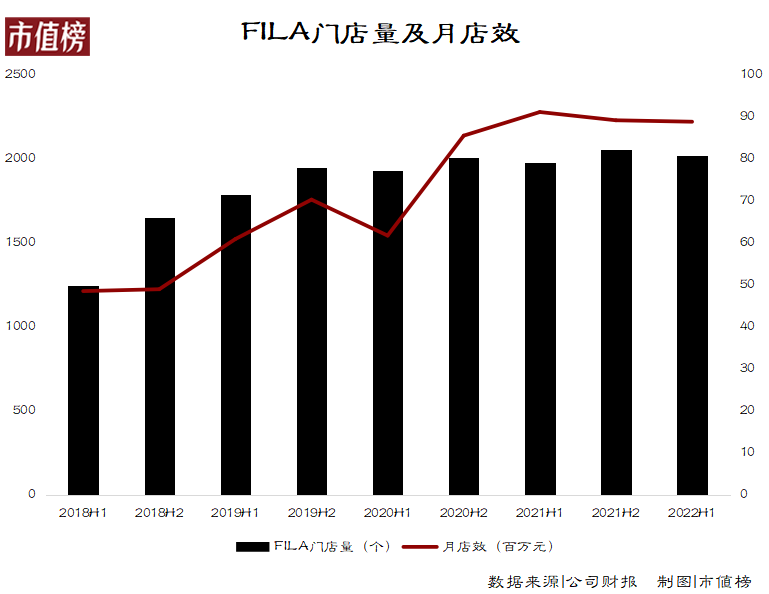 2019年以前,FILA通过不断开新店,加强规模效应,就可以将月店效从2018年上半年的48.5万元/店,提升至2019年下半年的70.3万元/店。