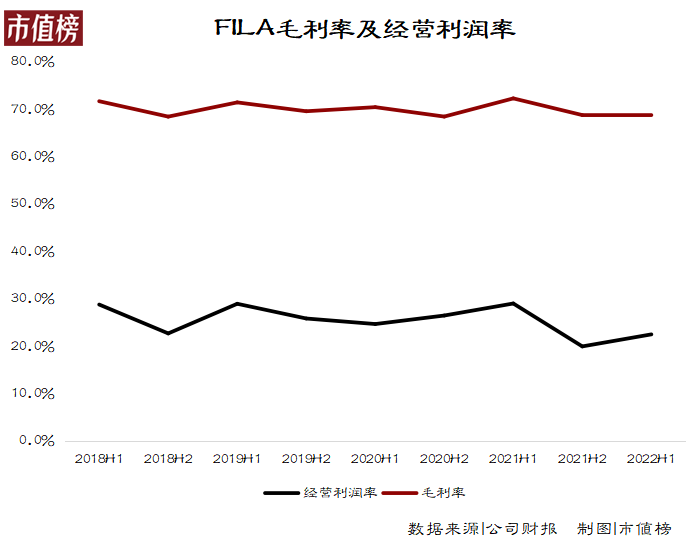 为此,2021下半年,FILA增加了经营开支比例,将经营利润率从去年同期的26.5%拉低至20%,是2018年以来的新低。