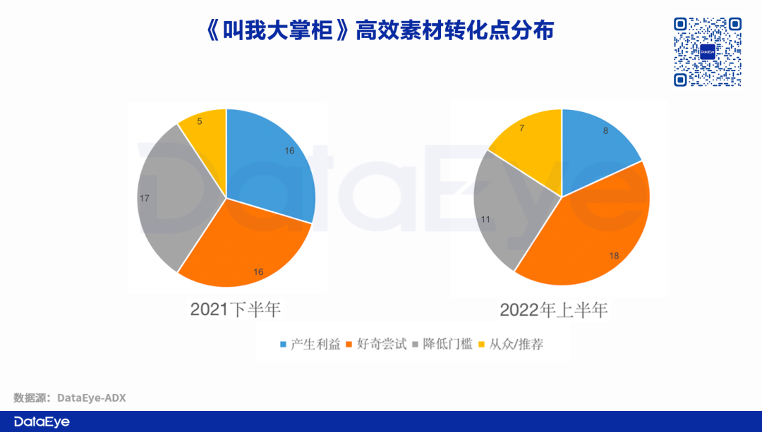 《叫我大掌柜》设置了多个转化点,但不同的是,2021年下半年与2022年上半年在转化点上会有不同的侧重。