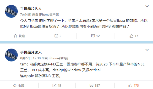 而来自中国台湾芯片产业链的数码博主 @手机晶片达人表示,台积电内部已经决定放弃 N3 工艺,因为客户几乎都不愿意用。