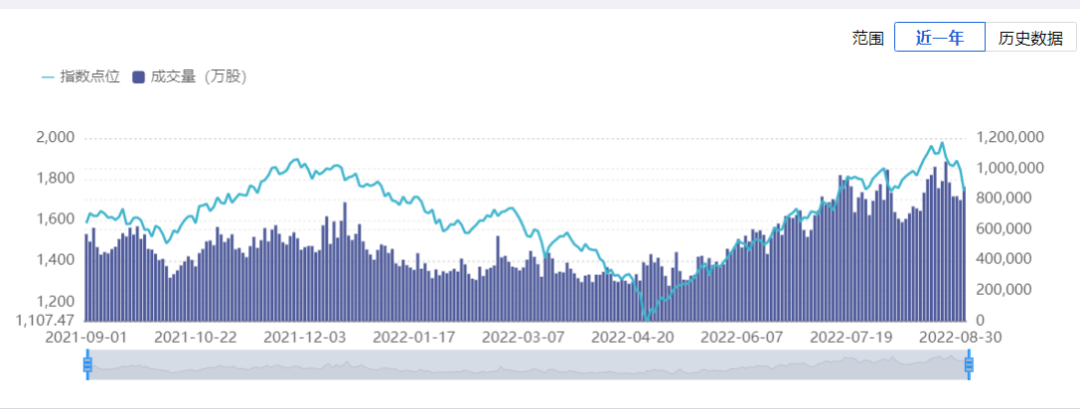 (储能板块历年成交量和指数点位 图源:同花顺)