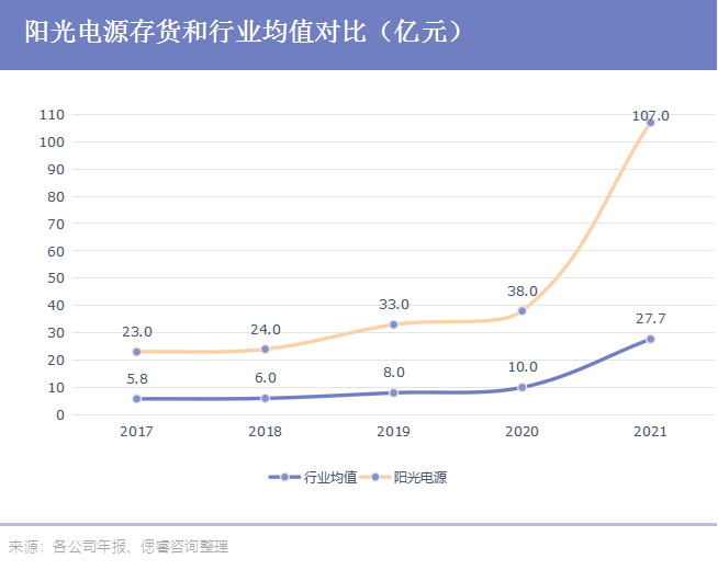 放眼整个行业,从2021年第三季度开始,阳光电源存货增长水平已经大幅超出行业均值。而这,足够能够反映其对经营情况把握不得当,对未来过于乐观。
