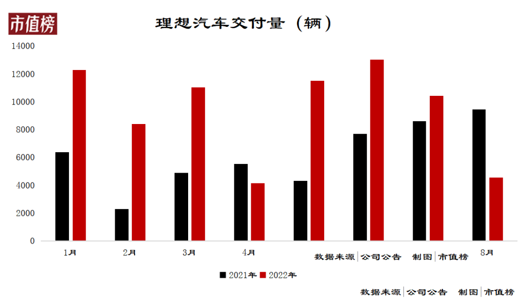 9月初,8月份的交付量一出,理想的成绩让人大跌眼镜,单月交付4571辆,同比下降51.5%,环比下降56.1%。