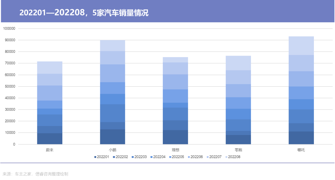 这一惨烈的营收状况从上半年的销量上可以预见:从今年3月份开始,哪吒和零跑就强势起来,这与其主打十万元级别的市场密切相关;