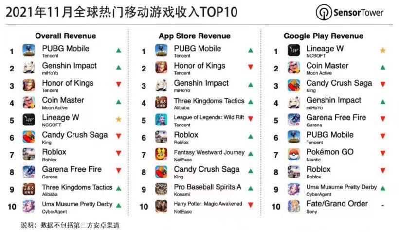 游戏正式上线后,也得到了国外玩家的支持。在权威机构的数据统计中,原神常居手游收入排行榜前三名,并在多国登顶,足以见得它的实力。