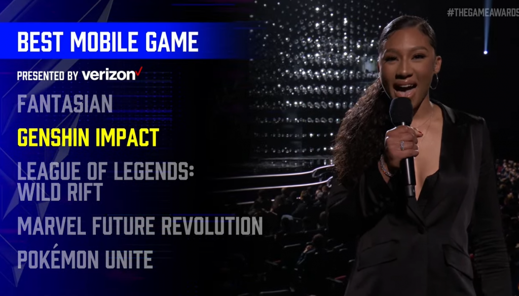 在这一阶段,原神玩家感觉最为扬眉吐气的事件则是,2021年TGA年度颁奖典礼上,年度最佳移动游戏颁给了原神。