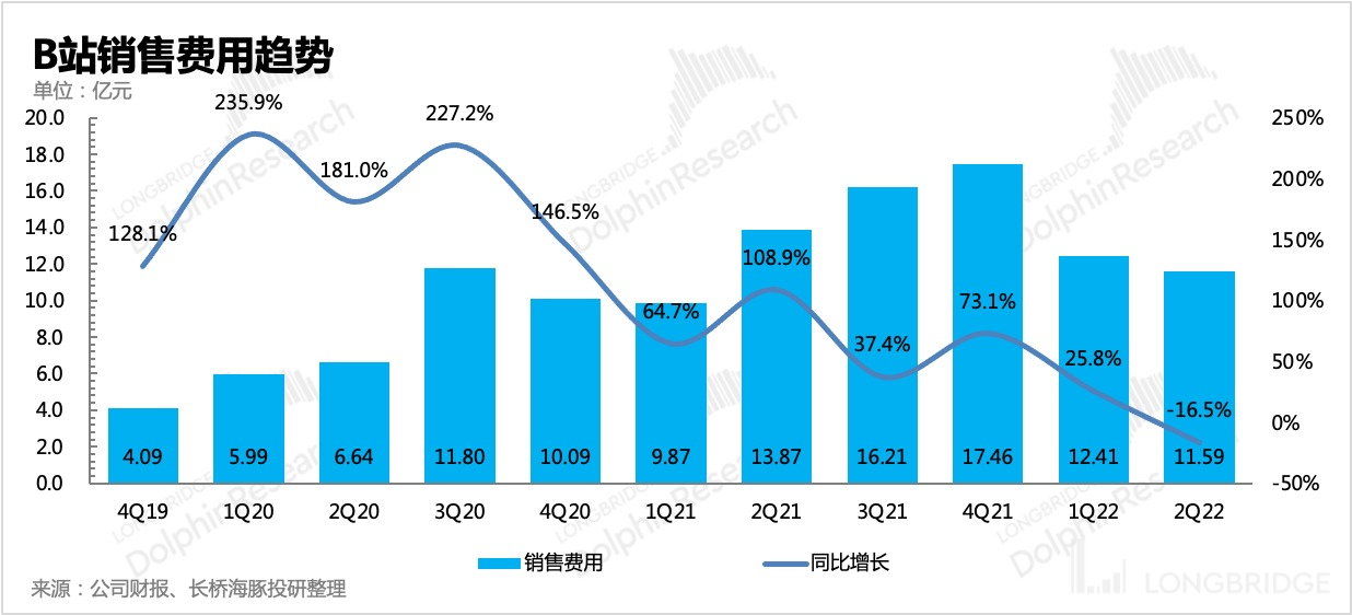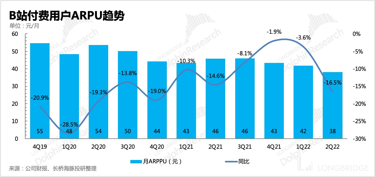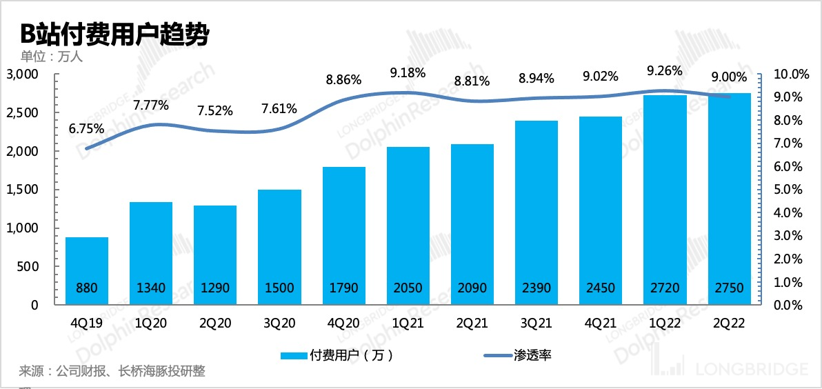 2)另一方面,二季度上海疫情,B 站对上海市民免费送了 100 万份 15 天大会员,减少了部分潜在用户的付费。