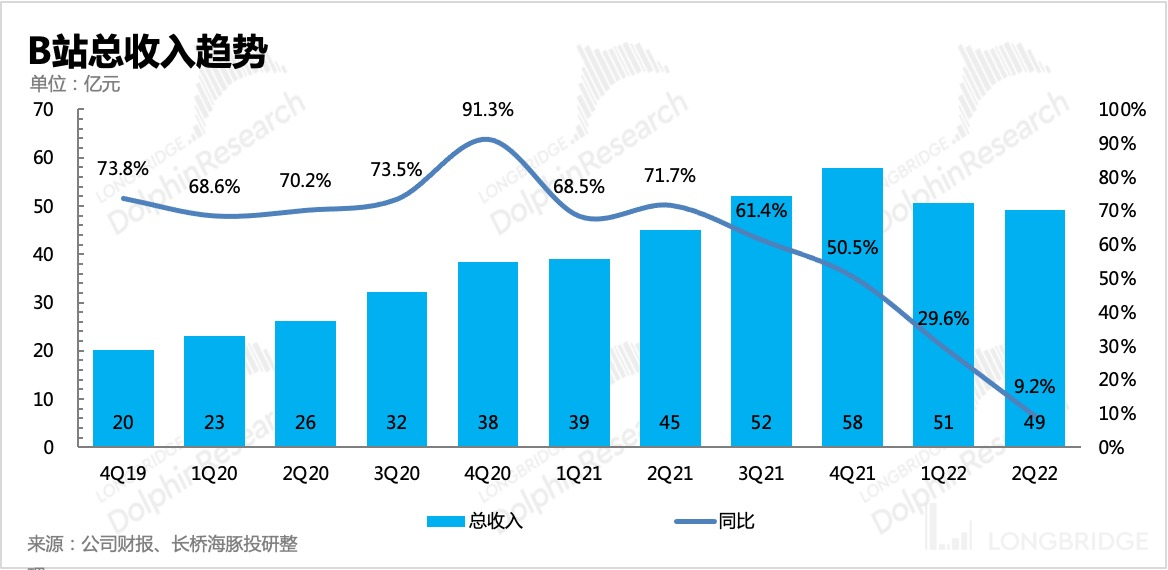 B 站二季度业绩虽然亏损夸张,创了新高,但海豚君认为,当季的亏损并不是主要问题,令市场加剧担忧的是公司对下季度的指引,体现出来的事疫情后 B 站业绩恢复进度不及预期,从而带来因为持续低迷的宏观环境以及加剧的同行竞争,亏损周期存在延长的可能。
