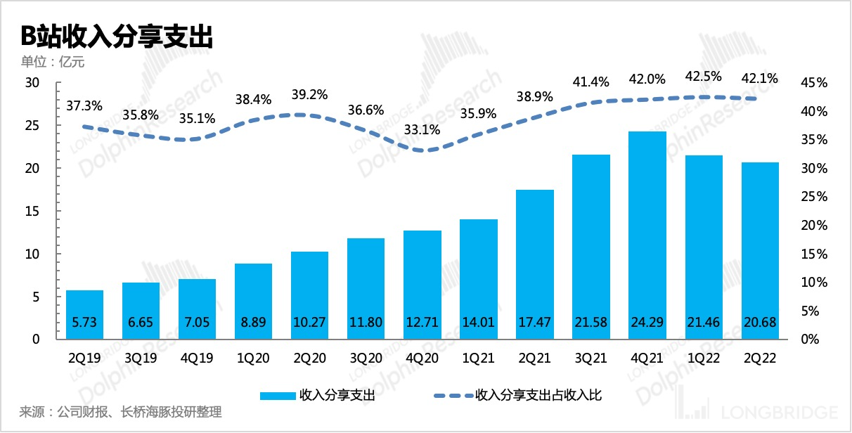 但二季度在收入增长主要靠直播的时候,收入分享支出占整体收入的比重环比并没有增加,由此说明,公司已经在调整此前过高的直播分成比例。