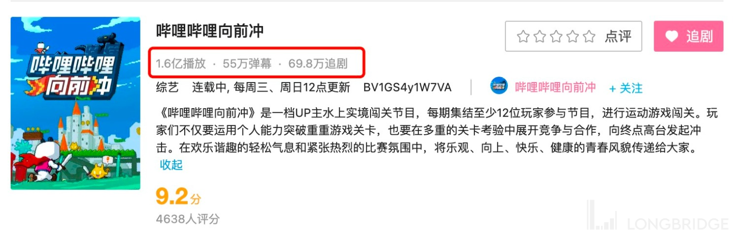 对于下半年的用户增长,海豚君认为短期问题不大。三季度有暑假,也是 B 站的用户活跃和获客的旺季,环比来讲不会差。同时,8 月上线的 B 站自制过关综艺《哔哩哔哩向前冲》原本是由 Up 主参加的综艺,逐渐蔓延到艺人、电竞选手,破圈效果显著。