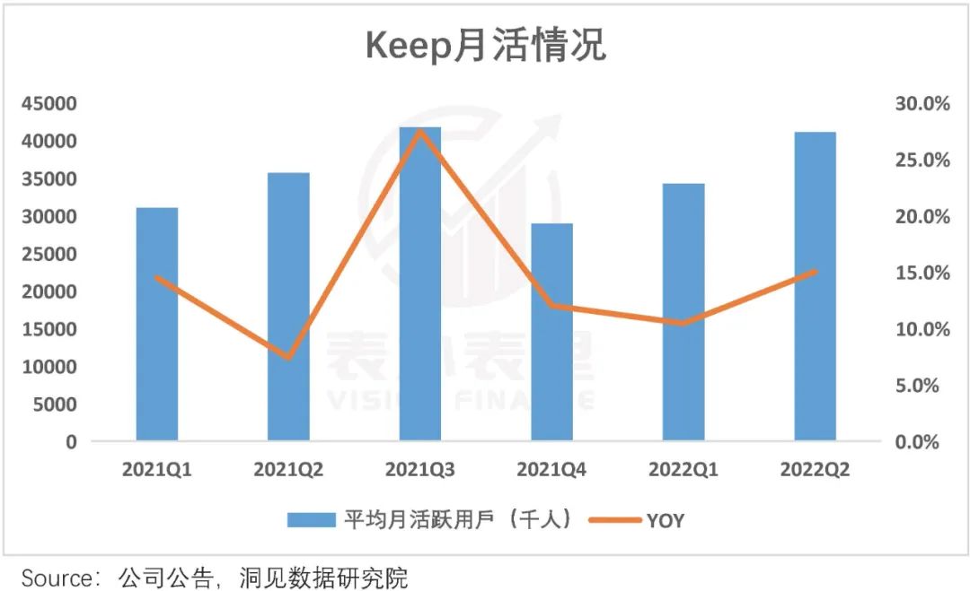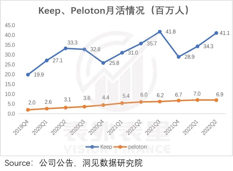 然而在用户规模呈现上,截止2022Q2 Peloton的MAU仅有690万。与之相比,Keep 2022Q2的用户数超过4100万,是Peloton的6倍。