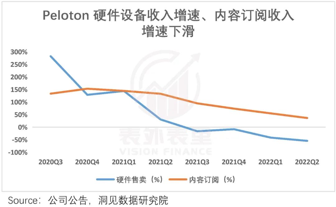 而基于硬件设备是流量入口,其消费疲软,自然会影响到订阅收入。如下图,订阅收入增速与硬件销售增速的下滑线几乎重叠。