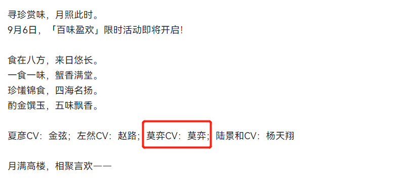 现在她基本放心了。米哈游在9月2日宣布采用逆熵AI进行声音处理制作,9月6日新活动莫弈带着AI声带回归,《绘旅人》的AI版叶瑄也实装完毕。两款AI老公初登场,市场反馈大多是正向的。