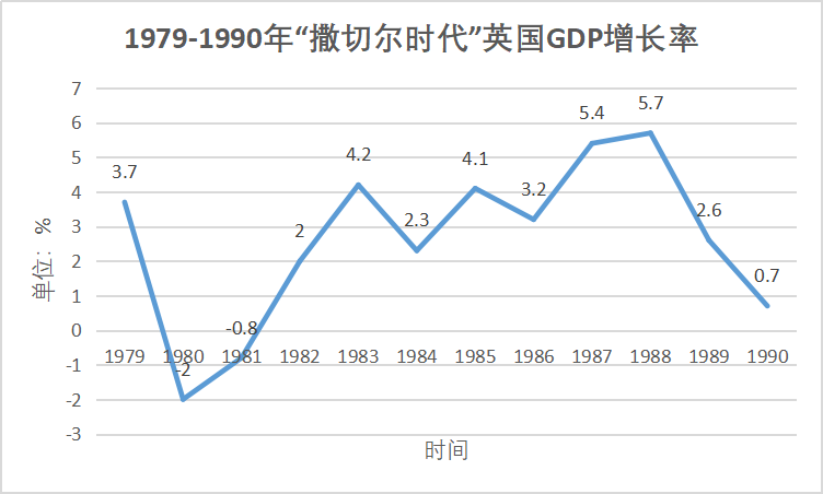 参考世界银行国民经济核算数据,在1980年英国GDP增长率达到-2%后,该数据开始上行。除了执政前期和末期,英国经济增速还是维持在相对稳定的区间。