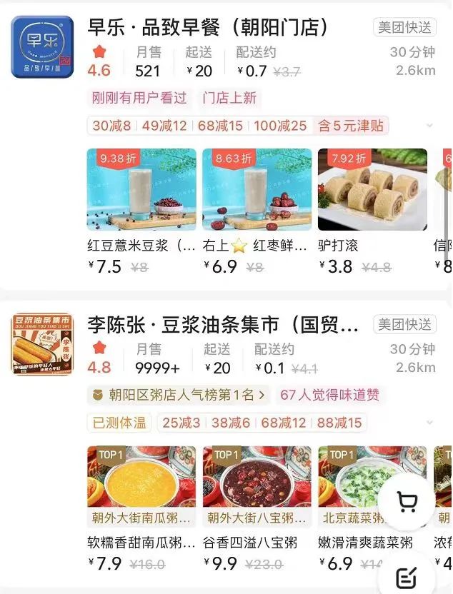 第一种是基于已有的餐饮门店,将早餐品类单独开外卖店铺。