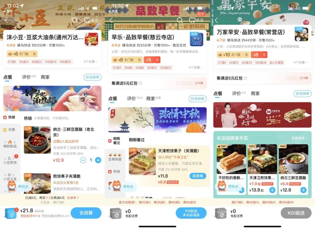 - 第三是品牌化明显,外卖店铺经过精心设计、产品名也各有来头,比如、「天津·棒槌大油条」、「老北京·三鲜豆腐脑」、「逍遥镇·胡辣汤」、「老上海·葱花饼」、「西安·腊汁肉夹馍」。