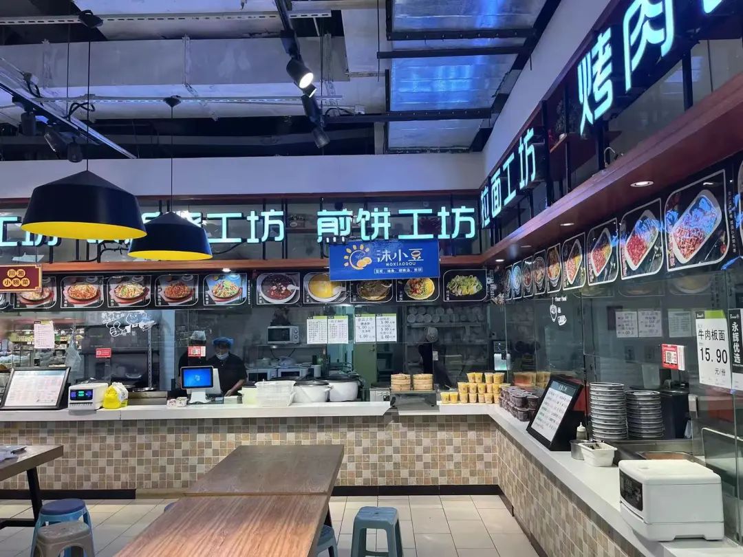 万家早安万达店和沫小豆万达店,在一家名为「食遇优厨」的美食城。