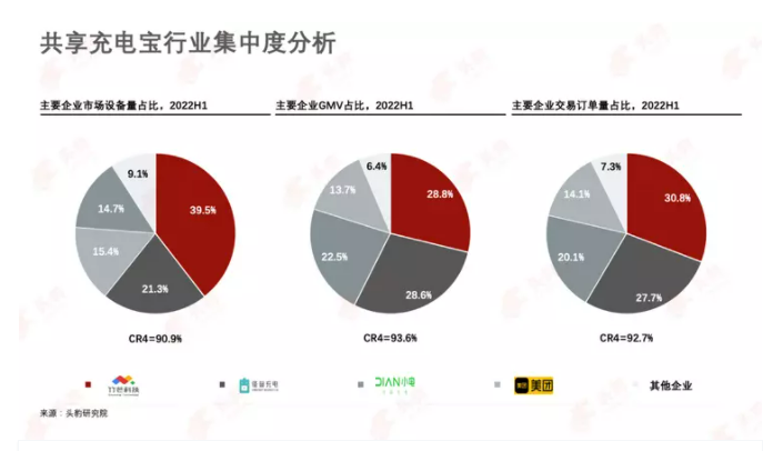弗若斯特沙利文在《2022年中国共享充电宝行业市场研究报告》指出,2022年上半年,在竹芒、怪兽充电、小电、美团之外,其他共享充电宝品牌的设备量、GMV和订单量的市占率均为个位数。