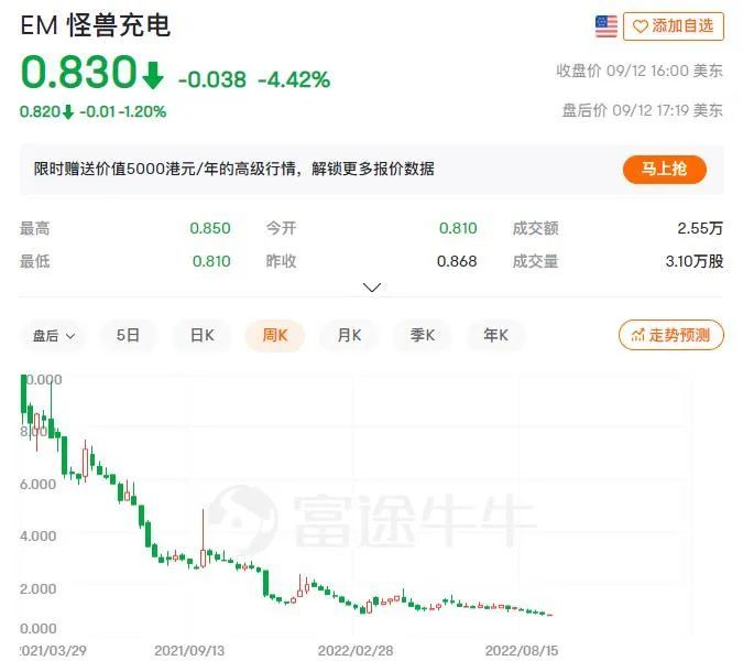 投资者显然已没有充足的耐心继续等待共享充电宝企业验证商业化能力,怪兽充电0.8美元的股价,较上市当天开盘价已经跌去九成。
