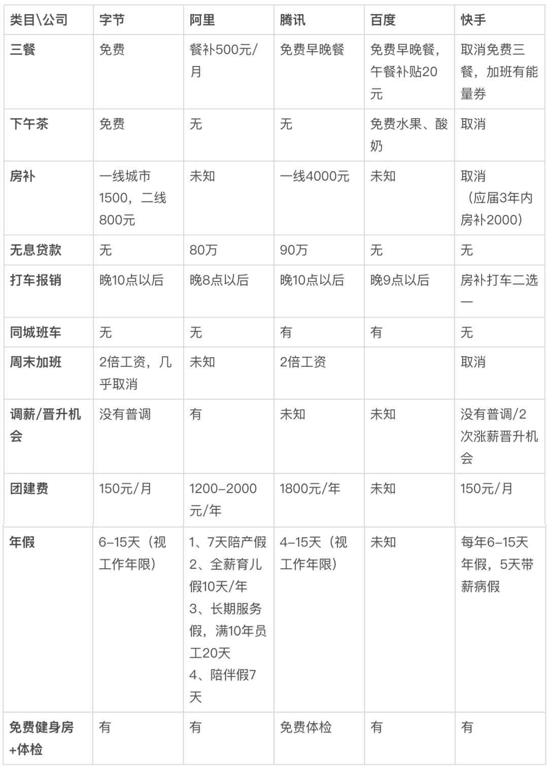 快手福利可能是缩水最严重的,没了免费三餐,下午茶,大小周加班费,房补。