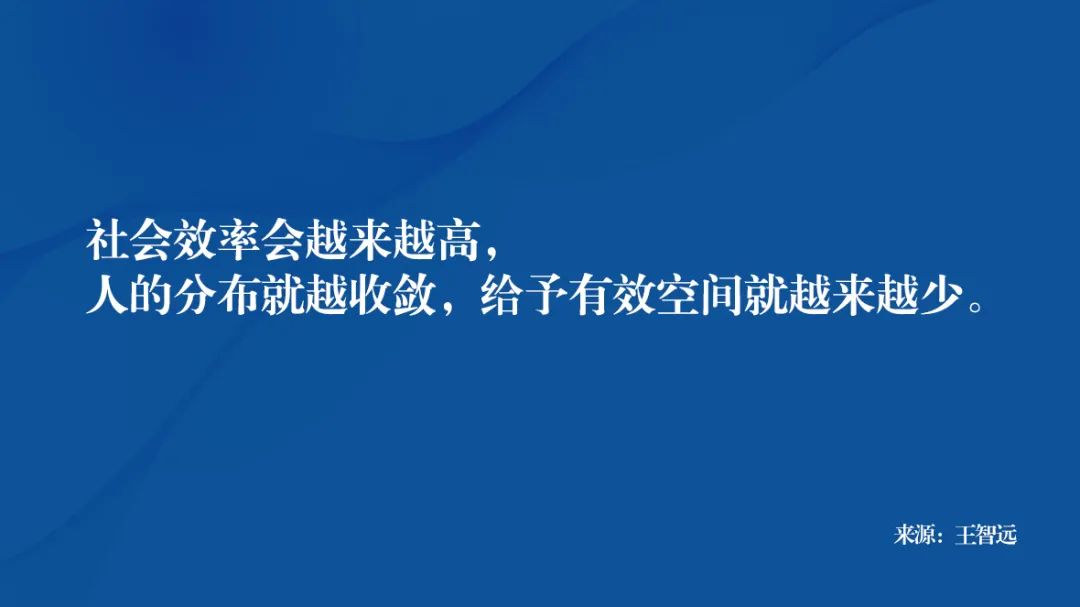 很多人不相信这个,是因他们脑袋接受不了“人是受时间限制”的,社会效率会越来越高,人的分布就越收敛,给予有效空间就越来越少。