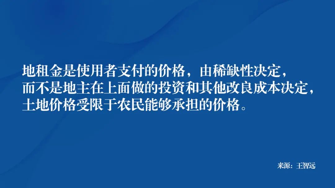大概意思是,土地租金是使用者支付的价格,由垄断性(稀缺性)决定,而不是地主在上面做的投资和其他改良成本决定,土地价格受限于农民能够承担的价格。