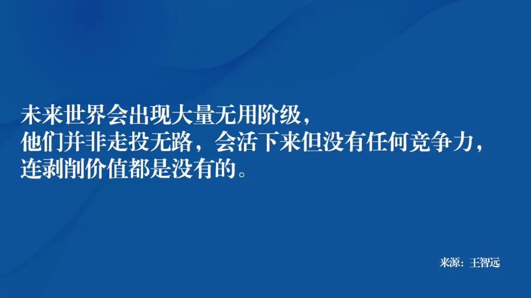 这也刚好符合以色列历史学家尤瓦尔·诺亚·赫拉利(Yuval Noah Harari)在《未来简历》中的说法,未来世界会出现大量无用阶级,他们并非走投无路,会活下来但没有任何竞争力,连剥削价值都是没有的。