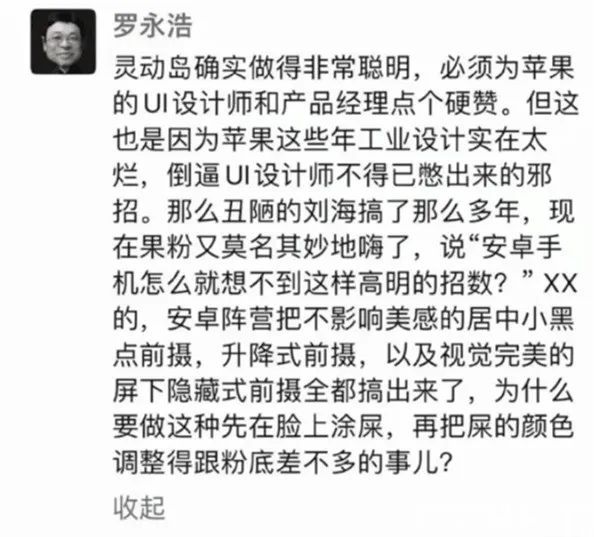 这也是为什么本次苹果发布会,苹果的“灵动岛”虽然让人惊奇,但包括罗永浩在内许多观点认为这只是一种无可奈何的变通。