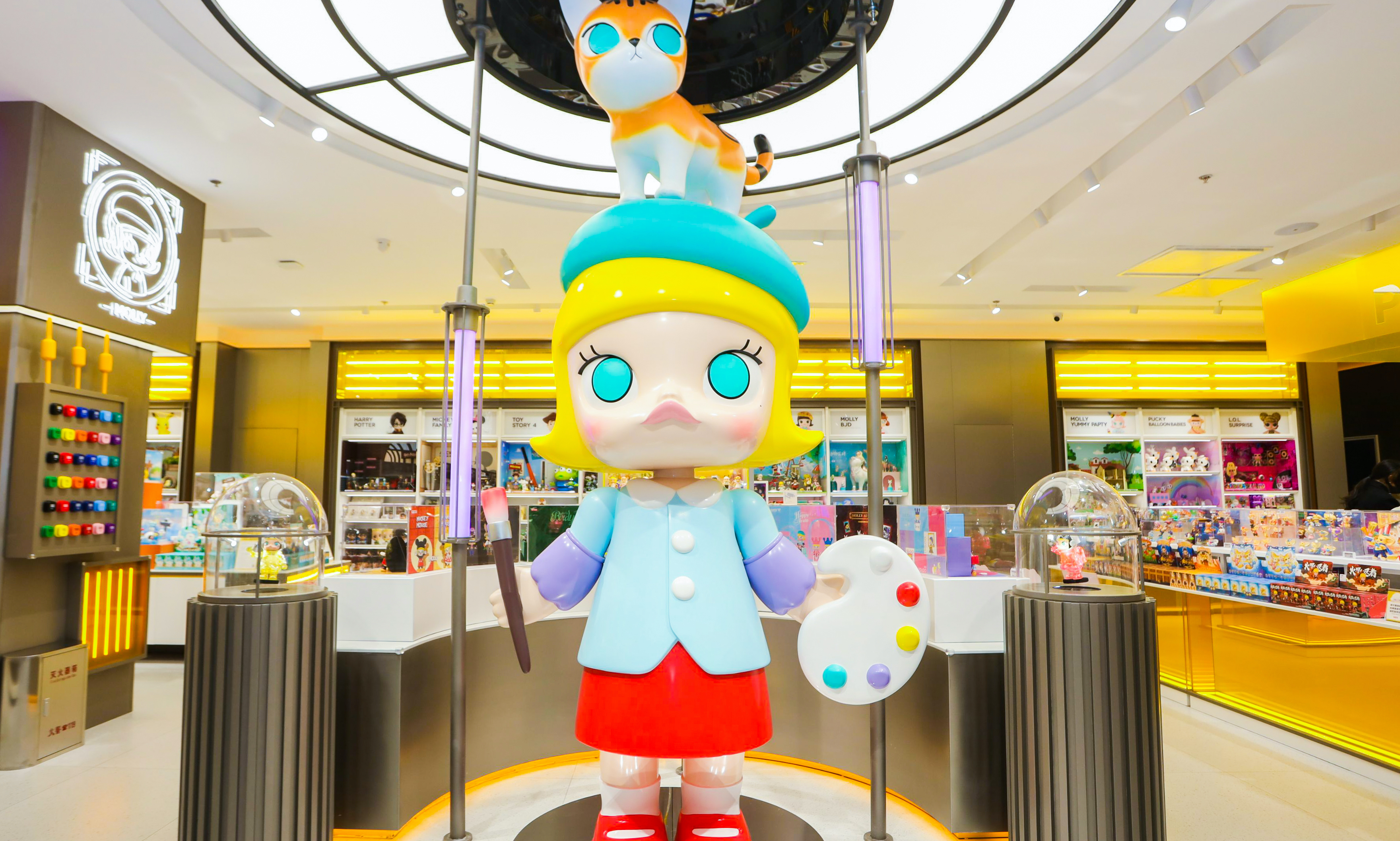在品牌联合方面,泡泡玛特与Moncler、可口可乐推出联名款;在艺术家合作方面,联合韩美林、大久保、PHILIP COLBERT推出多元的艺术风格潮玩。