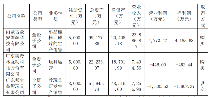沐邦高科2022年上半年实现营收3.86亿元,净利润8712万元,同比下降69.02%。该公司主营业务包括单晶硅棒、硅片的生产销售、益智玩具业务、医疗器械业务、教育业务以及精密非金属模具业务,为沐邦高科实现盈利的主要是依靠公司收购的子公司豪安能源,2022年5月和6月营收达到了2.39亿元。