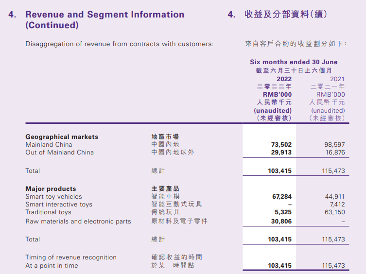 报告期内,按地区划分收入,中国内地营收达到7350.2万元,中国内地以外地区营收为2991.3万元;按产品进行划分,智能车模占总营收比例最高,为6728.4万元。