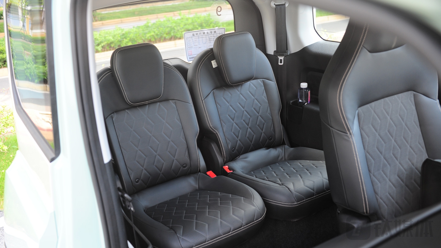 前排头部空间很宽敞,高个子驾驶者也不会有任何压迫感,座椅为纤维+麂皮设计,触感柔软,支撑性也比较不错。对于代步车来说,已经达到了较高的要求。