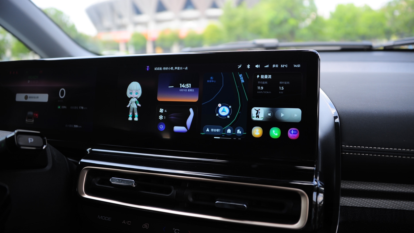 2023款KiWi的中央屏幕很有意思,左侧为3D虚拟形象人机互动,可以识别出声音的“喜怒哀乐”,并且自身也将会有更多情感的交互。科大讯飞提供的系统功能十分强大,连续语音识别等功能也都拥有。另外,座椅控制、导航、娱乐功能也都有,可以满足对于智能车的各种需求。