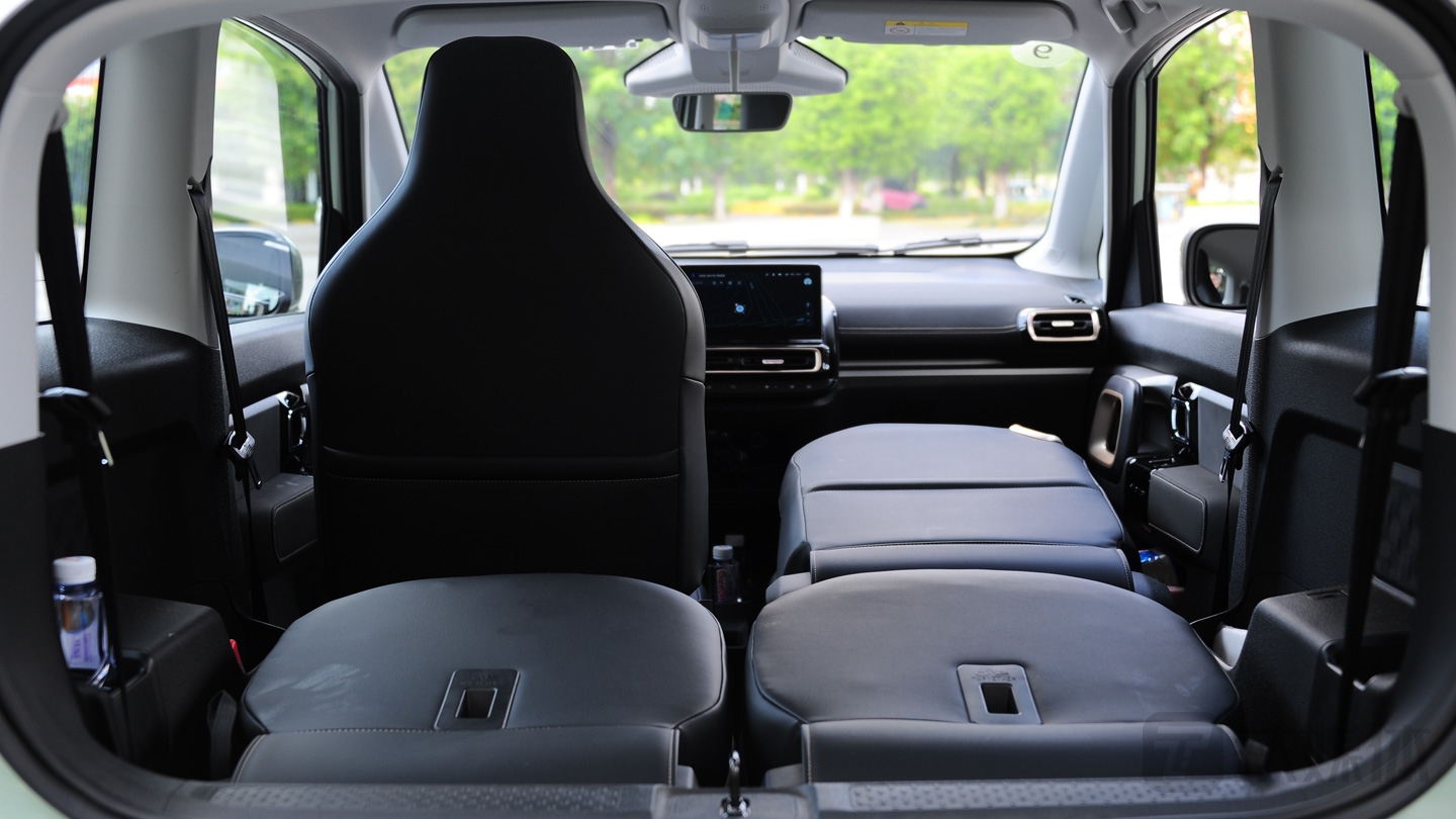 后排座椅和副驾驶座椅都可以全部放倒,这样会获得很平整的大空间,搬东西或做短途运输也有很强的实用性。在从设计上KiWi已经提前做好了准备。