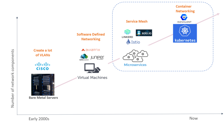 Gartner将这个新层称为“服务连接”—我们将看看这个术语是否流行—但它本质上是一个包含企业网络部分和来自应用程序团队的服务网格部分的层。而且因为这是客户的要求,我们已将这些功能添加到Cilium本身中。因此,从本质上讲,Cilium正在从企业网络端向上发展,而服务网格正在向下进入更多的网络端。