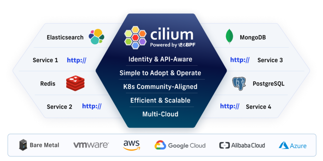 Cilium和eBPF带来了多云以及中立层。它在本地的行为与在公共云中的行为完全相同。一些公共云提供商在后台使用Cilium来提供托管的Kubernetes产品,而电信公司则将它用于本地5G基础设施。它把不同的基础设施链接到了一起。